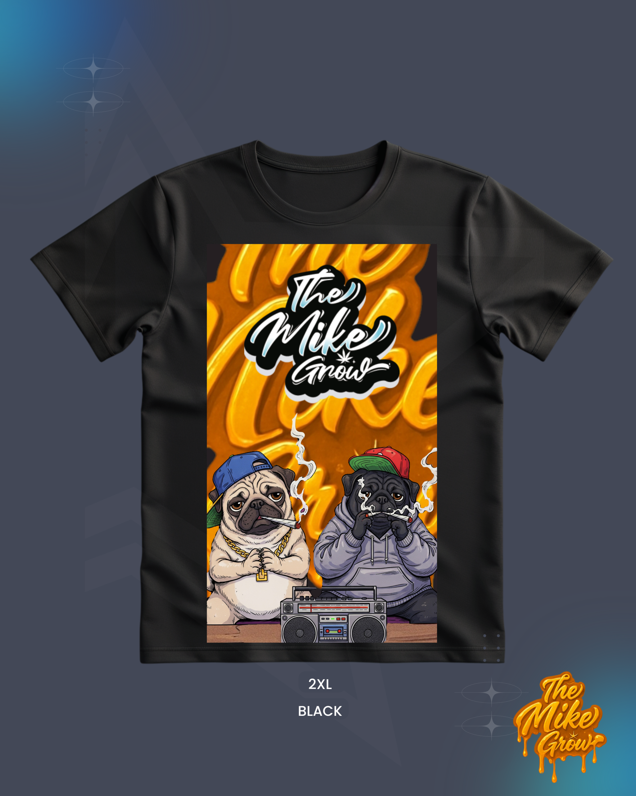 La nueva Polera Pugs Hip Hop de The Mike Grow llega con un diseño cargado de actitud: dos pugs en modo rapero, con cadenas, gorros y un boombox listos para romper la escena.